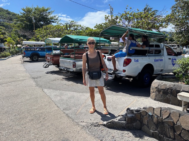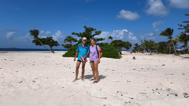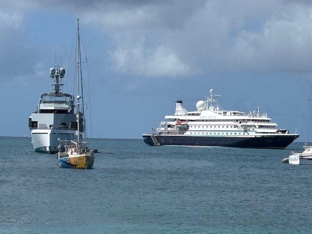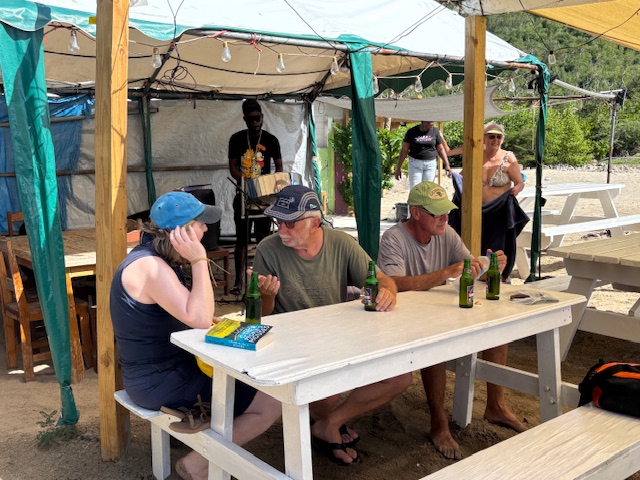 Am Sonntag kam bereits am Vormittag ein großes Touristenschiff und an Land wurde ab 13.00 Uhr karibische Steel Livemusik angeboten. Dort haben wir ein Bierchen getrunken und uns sehr nett mit eine Engländerin unterhalten. Dann haben wir 3 Hütten weiter, wieder eine Pause gemacht. Dort haben wir eine Segelcrew mit 8 Gästen und einem Skipper aus dem Elsaß kennengelernt. Danach sind wir weiter und haben das neu gebaute Resort besichtigt. Gunnar hat am Anlagesteg auf uns gewartet, bis wir ihn mit dem Dinghi wieder abgeholt haben. Das war heute sein längster Spaziergang seit er die Ischiasschmerzen hat. Wir haben gestern von unserem Borddoc eine neue Liste über die Einnahme von Schmerztabletten für die nächtsten 8 Tage bekommen. Diese hat er uns, mit den vorhandenen Medikamenten, welche wir an Bord haben zusammen gestellt.