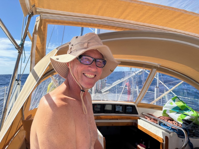 Samstag 10.1. 135,9 sm weiterhin strahlender Sonnenschein, die Segelstellung ist immer noch gleich / Schmetterling, abends haben wir uns Vesper gemacht, Gunnar´s Schmerzen werden nachts etwas besser.