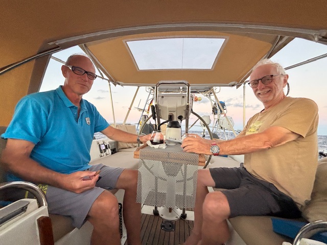 Am Sonntag 28.12. haben wir nach 21 Std. 109,6 sm, abends gab es Nudeln mit Specksahnesoße. Andi und Gunnar haben draußen noch eine Zigarre und ein Glas Rotwein getrunken. von 3.00 – 9.00 Uhr sind wir motort.
