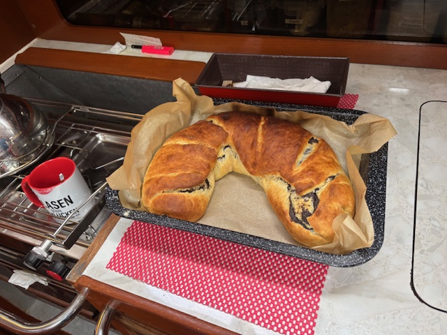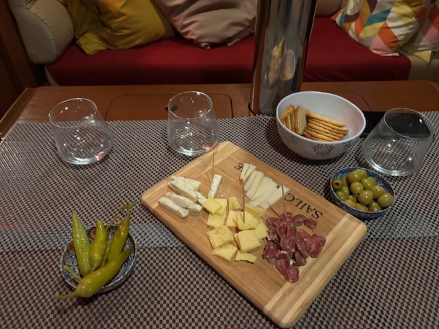 Freitag 2.1. nach 24 Std. 153,8 sm, abends gab es frisches Brot, Wurst, Oliven und den restl. Nudelsalat.