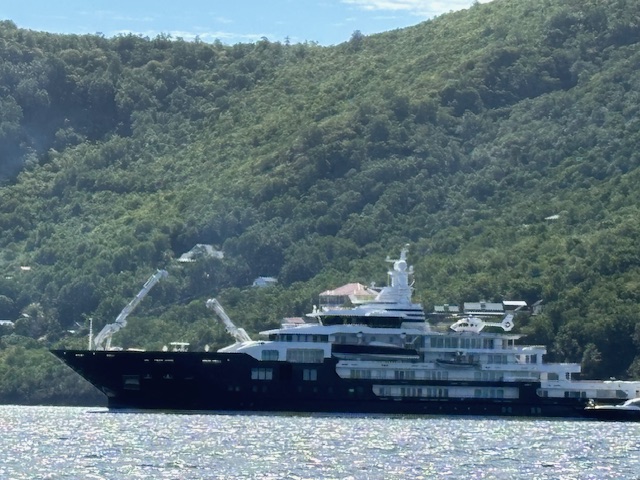 Am Mittwoch sind wir nach dem Frühstück um 11.00 Uhr ausgelaufen und zu der Insel Mayreau die Salt Whistel Bay gesegelt. Bei der Ausfahrt der Bucht stand diese kleine Privatjacht incl. Hubschrauber. Einfach gigantisch. Nach 2 Stunden haben wir die kleine Bucht erreicht, jedoch waren schon ziemlich viele Boote dort. Wir haben das Dinghi ins Wasser gelassen und endlich mein SUB aufgepumpt.