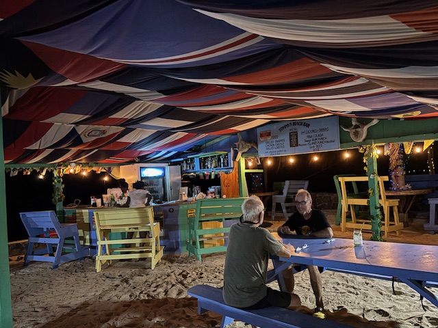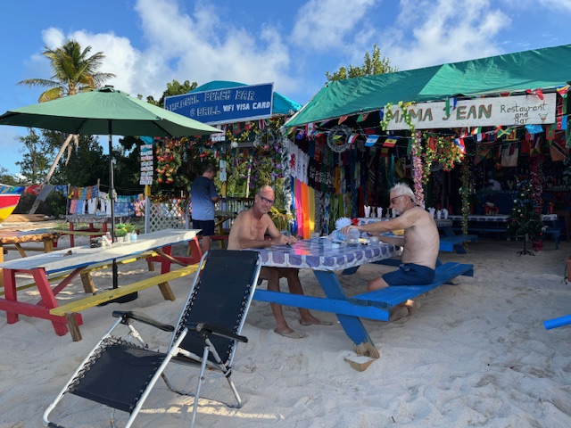 es gibt ungefähr 4 solche Strandbar Hütten. Im April hat ein Hurrikan diese Insel ziemlich verwüstet.