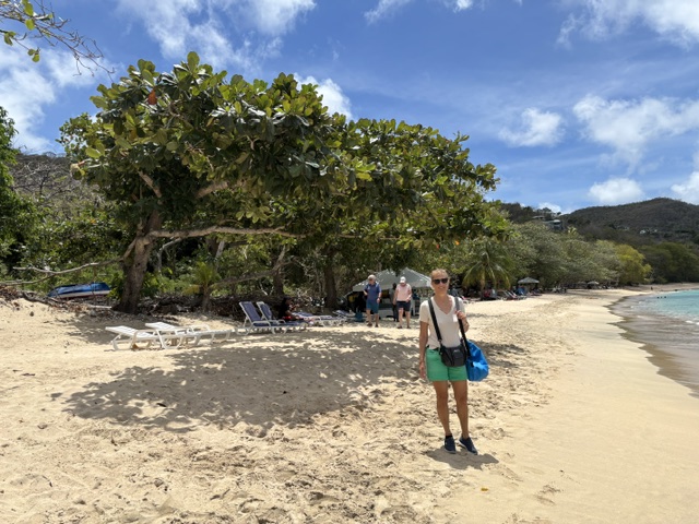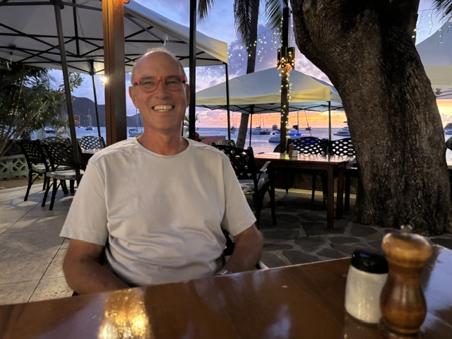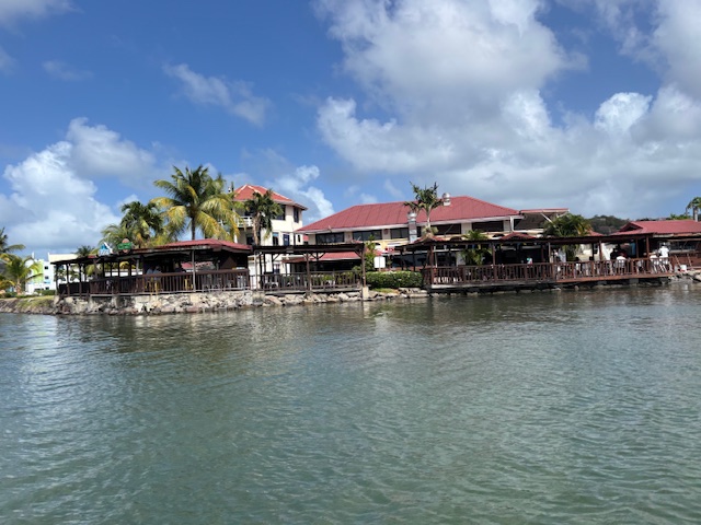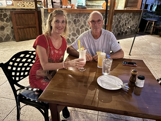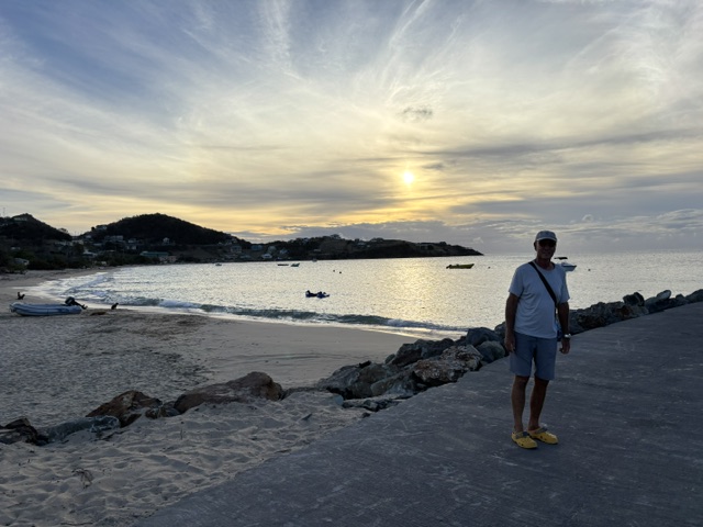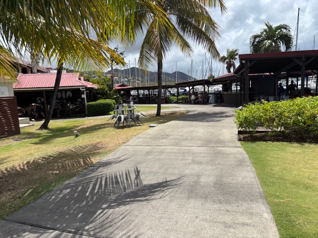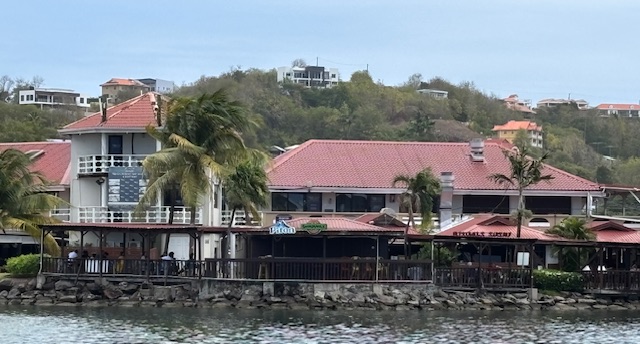 Am Donnerstag sind wir dann mittags an Land zum Einklarieren. Wir haben wieder den Spaziergang zu dem weißen Restaurant am Strand gemacht. Den selben Spaziergang hatten wir direkt vor Gunnar`s Therapie in der Rodney Bay gemacht. Damals hat er auf dieser Strecke mindestens 8 Stop´s eingelegt, um immer wieder sein Schienbein zu massieren. Heute sind wir ohne Stop und Schmerzen mit einem angenehmen Tempo wieder zu diesem Restaurant gelaufen. Es ist eine unheimliche Besserung in Sicht. Wir haben dort ein Hairoun und Carib Bier getrunken. Auf dem Rückweg auch ohne Stop und Schmerzen. Wir haben abends an Bord gegessen.