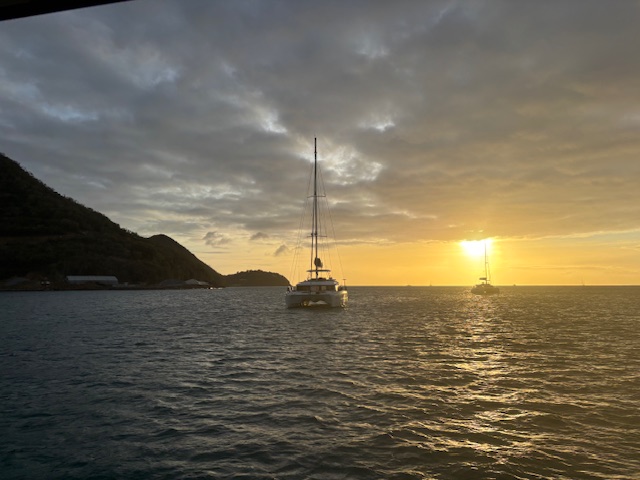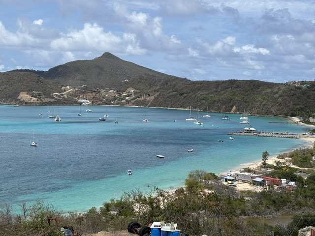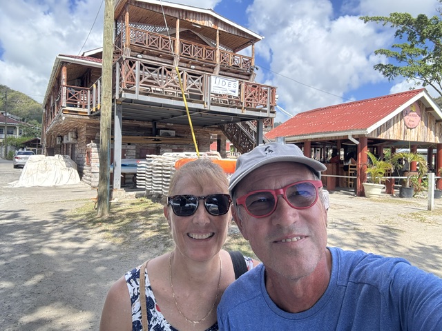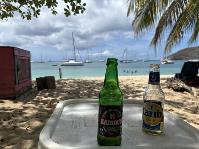 Am Montag haben wir das Boot innen sauber gemacht, das Brot rausgebacken und dann sind wir an Land gefahren. Zuerst sind wir in den Souvenirladen direkt am Dinghi Dock gegangen. Da war eine ganze Wand von den Bilder, wie verwüstet der Ort nach dem Hurrikan im Juli 2024 war. Die Verkäuferin hat uns alles erzählt, daß ein irrischer Milliardär unheimlich viel Geld für den Wiederaufbau gespendet hat und nun auch sehr hohen Wert darauf legt, dass der Ort sauber gehalten wird. Nachdem Gunnar mittlerweile schmerzfrei ist, haben wir einen längeren Spaziergang gemacht. Es geht hier ziemlich bergauf und -ab. An der Kreuzung links in dem „Schuppen“ haben wir ein Bier getrunken. Es waren ca 4 Einheimischen dort und haben um 12.00 Uhr mittags schon den Rum pur getrunken. Wir haben uns sehr nett mit dem Besitzer unterhalten und wir genossen den herrlichen Blick auf die Tobago Cays und Mayreau. Dort waren wir schon mit Andy in dem Turtle Watching Reserve. Am Rückweg haben wir zusammen in dem Restaurant Soul Food Fisch&Chips gegessen. Das war das einzige Gericht, jedoch war das bisher der beste frische Fisch. Zuletzt haben wir in der Coconut Bar noch ein Bier getrunken. Abends haben wir an Bord gegessen.