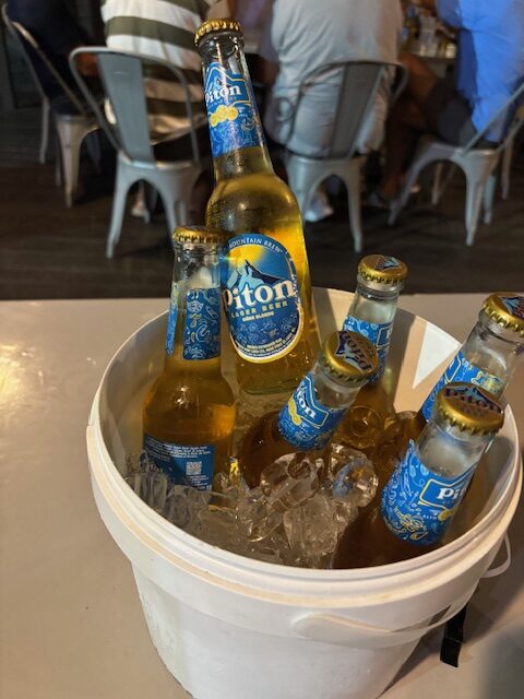 Am Montag sind wir um 9.30 Uhr zur Soufriere Bay gesegelt. Wir hatten schönen Wind und sind um ca. 12.30 Uhr angekommen. Wir mussten wieder an einer Boje festmachen. Der Bootsboy wollte für seine Hilfe 20 ecs und abends kamen die Ranger und haben pro Nacht 54 ecs verlangt. Mittags sind wir wieder in die Bar, wo wir bereits mit Andy, Dania und Felix waren und haben dort ein Piton getrunken. Die Besitzerin hat uns wieder erkannt. Abends haben wir Käsemaccaroni mit Tomatensalat an Bord gegessen.
