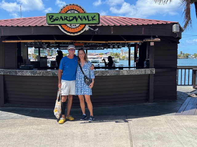Am Mittwoch sind wir vor dem Frühstück zum duschen. Ich habe erstmal überall die Creme aufgetragen und Gunnar hat noch seine Übungen gemacht. Nebenbei habe ich Brot gebacken. Danach haben wir den Müll entsorgt und sind um 11.00 Uhr wieder ins Medical Center gegangen, da sie wissen möchte, wie es Gunnar nach der Therapie geht. Im Hafenbüro haben wir unseren Liegeplatz noch bis Sonntag verlängert. Ich möchte einfach hier solange noch bleiben, bis es uns wieder besser geht. Hier fühlen wir uns medizinisch gut aufgehoben. Wir sind zurück an Bord. Gunnar erledigt noch ein paar E-mail mit der Werft in Grenada, ich telefoniere noch mit Dania und schreibe meine Homepage. Um 15.00 Uhr haben wir Gunnar´s Cousin Alexander und Patrizia angerufen und fast 2 Stunden telefoniert. Zum Abendessen gibt es Tomatensalat mit gebratenen Nudeln und Ei. Danach gehen wir noch zum Boardwalk und trinken dort ein kleines Bierchen.