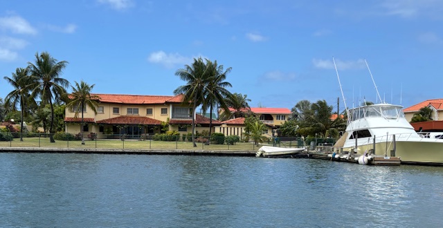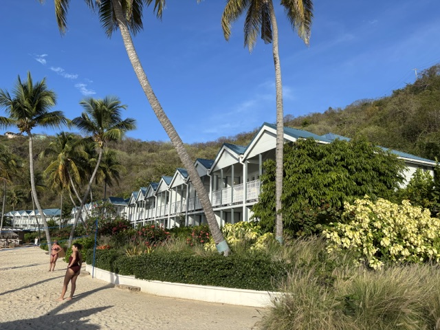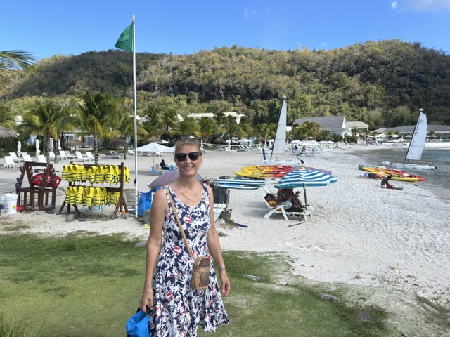 Am Dienstag habe ich nach dem Frühstück außen die Bordwand von den Algen befreit. Ich war mindestens eine Stunde im Wasser. Das Wasser ist hier traumhaft türkis und warm. Gegen 16.00 Uhr sind wir an Land und haben einen Spaziergang durch das Resort gemacht. Jetzt kann man mit Gunnar auch wieder in die Höhe laufen, wo wir eine herrliche Sicht auf die Bucht und den Ort haben. Wir sahen schon einige Wasserschildkröten von weitem und aber immer nur den Kopf. Bei diesem Spaziergang liefen die Schildkröten im Resort und auch an der Straße entlang rum. In dem Resort wird einem der extreme Unterschied zwischen den reichen Touristen und der armen Bevölkerung bewußt. Das war bereits schon in St. Vincent in diesem Resort so. Abends um 18.00 Uhr wollten wir noch etwas Essen gehen, aber kein Lokal hatte mehr geöffnet. So sind wir an Bord zum Essen. Im Resort war von 18.00 – 22.00 Uhr Party, da morgen die Osterregatta statt findet. Wir konnten die Musik noch an Bord gut hören.