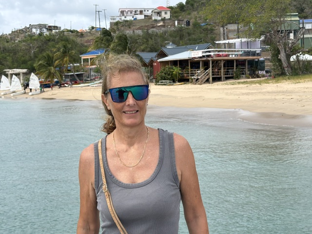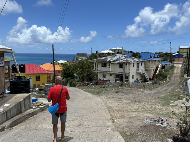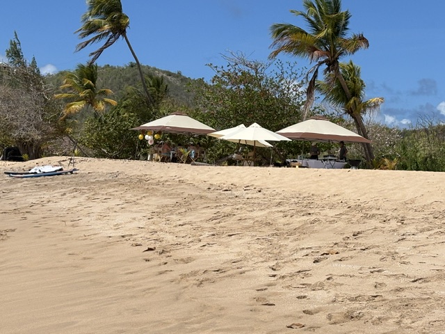 Am Samstag sind wir wieder an Land. Dieses mal sind wir nicht ganz hoch gelaufen, da gestern Gunnar´s Oberschenkel ziemlich verspannt war. Wir haben eine kleine Runde gedreht und danach in der Loulou Bar zwei Bier getrunken. Der Besitzer konnte sich noch an uns erinnern. Wir haben uns mit ihm über der den Hurrikan unterhalten. Er hat uns auch Video´s auf seinem Handy gezeigt. Der letzte Hurrikan hat 1955 die Insel verwüstet. Wir sind am Strand entlang gelaufen, da hat ein Einheimischer seine Trommel gestimmt und uns erzählt, daß gestern das letzte Kreuzfahrtschiff für diese Saison da war.